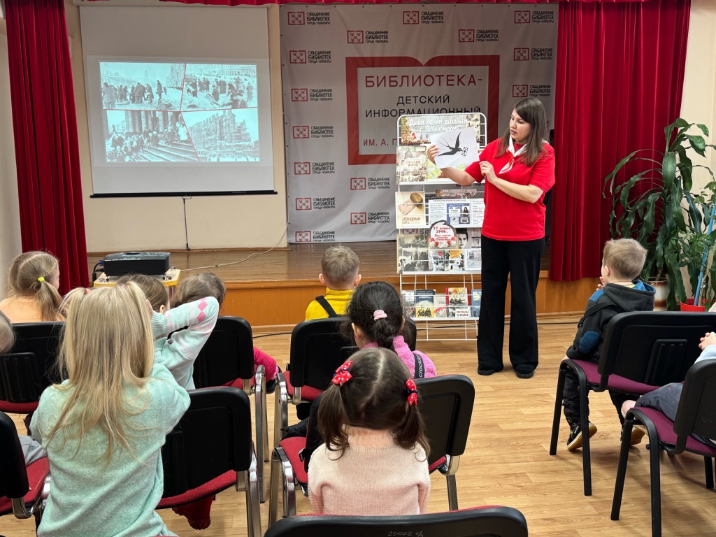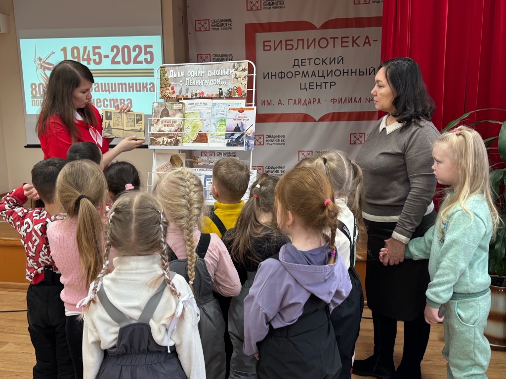 В преддверии такого важного праздника сотрудники Библиотеки им.А.Гайдара пригласили ребят на выставку-память «Дыша одним дыханием с Ленинградом». Юные посетители с интересом посмотрели познавательное видео о войне, а особо активные мальчики ещё и продемонстрировали свои знания при отгадывании тематических загадок.