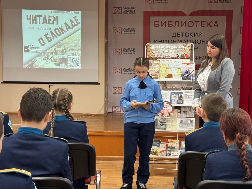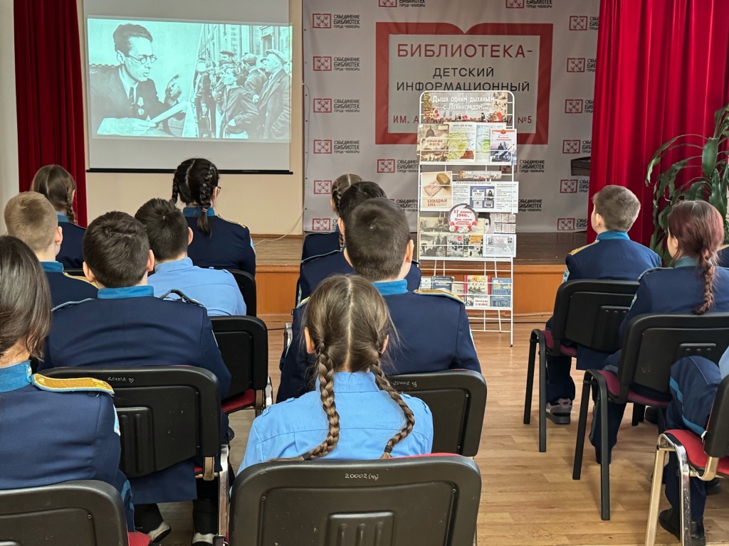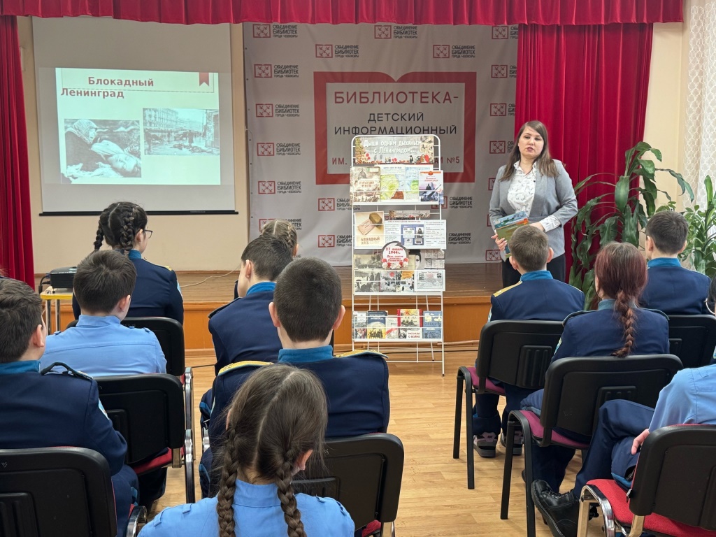 В Библиотеке им.А.Гайдара состоялся урок мужества под названием «Непокорённый Ленинград» для кадетов школы № 22 им. Героя РФ Н.Ф. Гаврилова. На мероприятии участники узнали о тяжёлой жизни в Ленинграде в условиях блокады: голоде и отсутствии тепла; о блокадном хлебе, карточках; «дороге жизни» по льду Ладожского озера, о мужестве и героизме ленинградцев, вынесших эти испытания. Мероприятие сопровождалось показом тематических видеофрагментов о непокоренном городе.