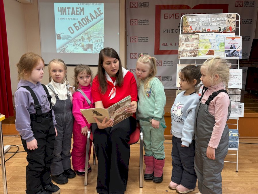 Юные читатели Библиотеки им.А.Гайдара, дошкольники детского сада № 162 г.Чебоксары присоединились к VI Международной сетевой акции «Читаем о блокаде» в год 80-летия Победы в Великой Отечественной войне.