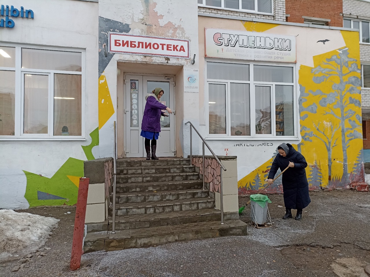 Чтобы обеспечить безопасность посетителей и избежать несчастных случаев, сотрудники библиотек города строго соблюдают технику безопасности. Мы ежедневно очищаем территорию от снега и наледи, а также своевременно обрабатываем её реагентом.