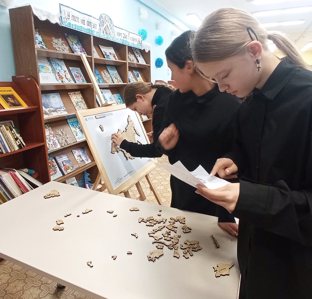 29 января читатели детских информационных центров им. А. Гайдара и им. Л. Кассиля, центра семейного чтения им. В.Чапаева, детских библиотек им. Х. Степанова и им. А. Барто, а также молодежной библиотеки им. И. Тургенева присоединились к челленджу по сборке спилс-карты России «Собиратель земель русских», организованному в рамках выигранного гранта Росмолодёжь.Гранты «Знаю Россию. Знаю Чувашию» и Федеральной просветительской программы «Знаю Россию – служу Отечеству».