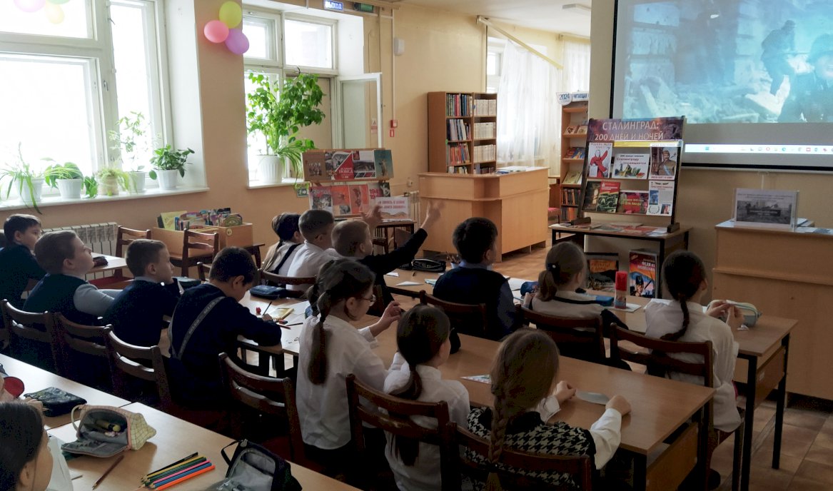 В целях сохранения памяти о мужестве и героизме тех, кто боролся за наше мирное будущее, сотрудник библиотеки рассказала ребятам о героях Сталинградской битвы, длящейся целых 200 дней и ночей.