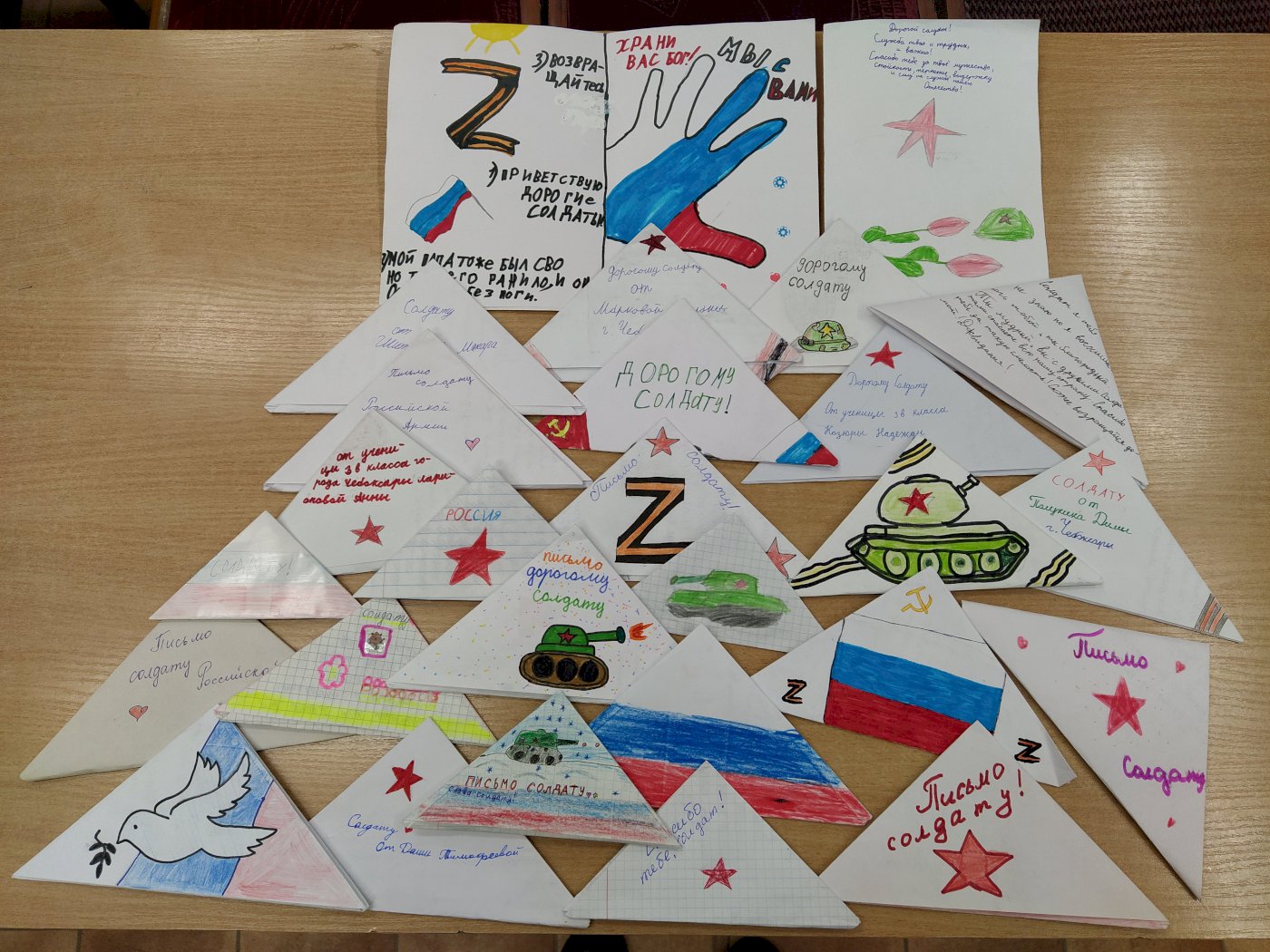От подвигов былых времен разговор перешел к современным подвигам. В заключение патриотической акции ребята написали письма с теплыми словами поддержки и милыми рисунками для бойцов-участников СВО. Эти замечательные «треугольники» скоро уедут на передовую и очень порадуют бойцов!