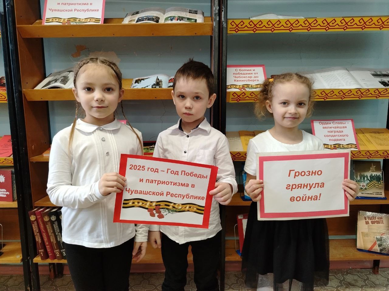 Для воспитанников группы «Теремок» детского сада № 140 в детской библиотеке им.Х.Степанова был проведен час истории «Грозно грянула война».