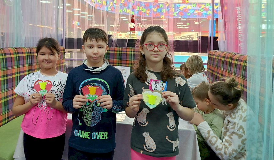 К этой дате в ТРЦ Мадагаскар сотрудники библиотеки им.Л.Агакова провели творческий мастер-класс по изготовлению открыток «Весеннее настроение».