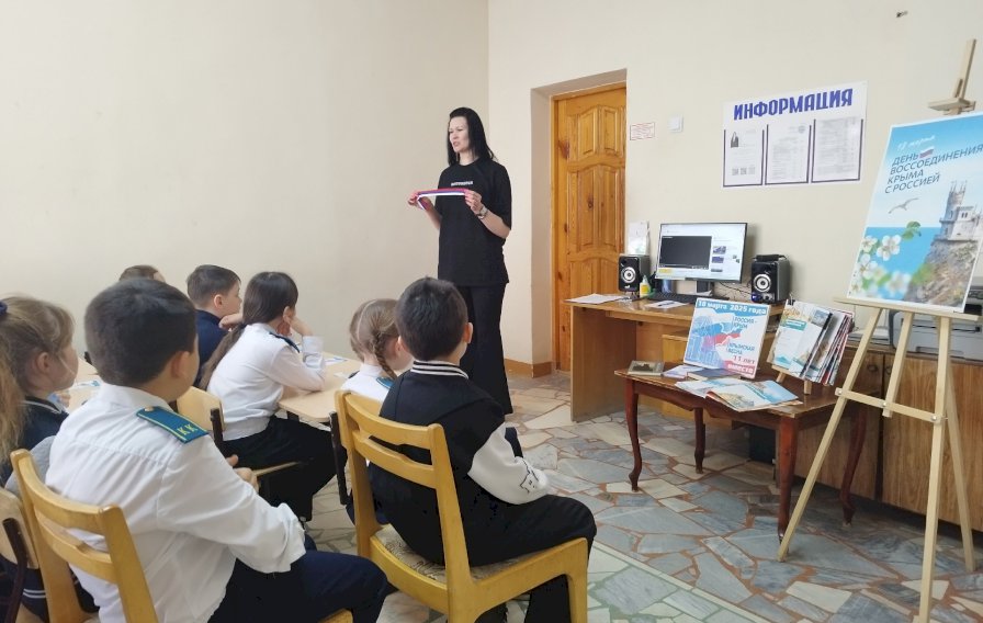 В рамках празднования Дня воссоединения Крыма с Россией, сотрудники библиотеки им. В. Чапаева организовали видеопутешествие для учащихся 3 А класса «СОШ №7». Это мероприятие помогло детям ближе познакомиться с уникальной природой и богатой историей Крыма.