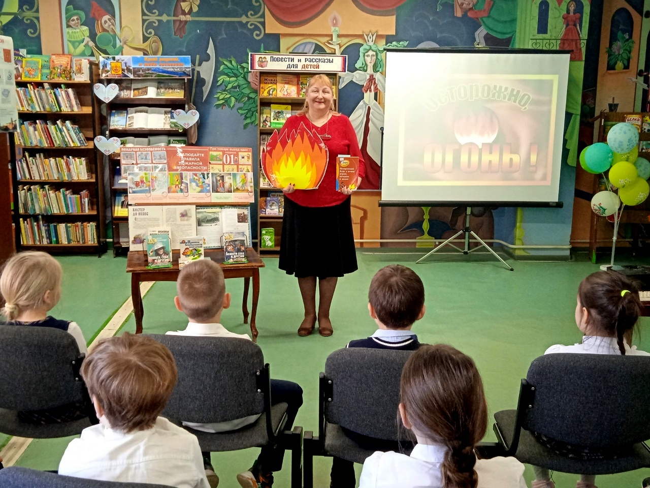Ребята вместе с библиотекарем беседуют о том, что огонь – это тепло, свет, пища, защита от врагов, о том, что если огонь вырывается из-под власти человека, то становится неуправляемым, коварным и беспощадным. Он сметает всё на своём пути, уничтожая лес, жилища, людей и животных. Затем библиотекари рассказывают о причинах возникновения пожара, напоминают правила пожарной безопасности и о том, как действовать в чрезвычайной ситуации при пожаре.