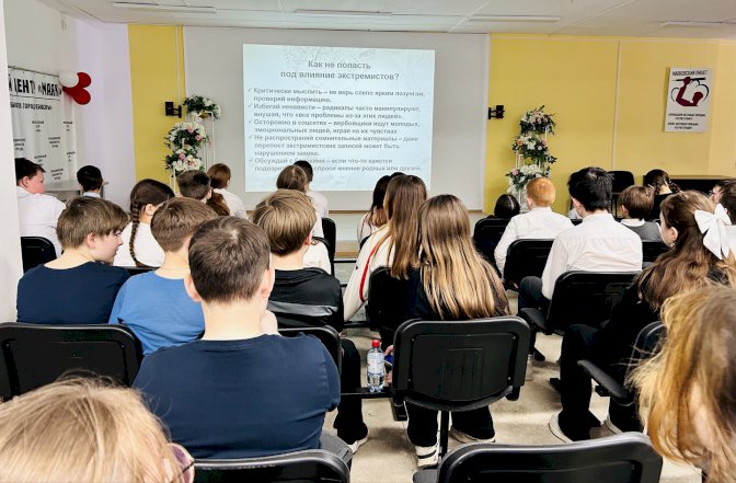 В ходе интерактивной лекции, сопровождавшейся визуальными материалами, школьники были ознакомлены с основными понятиями терроризма и экстремизма, их разновидностями и причинами возникновения. Особое внимание было уделено рассмотрению механизмов вовлечения молодежи в экстремистские организации, а также методам противодействия деструктивному влиянию.