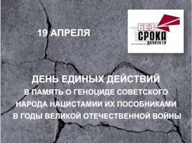 19 апреля в России отмечается День единых действий, посвященный памяти жертв геноцида советского народа, совершенного нацистами и их пособниками в годы Великой Отечественной войны.