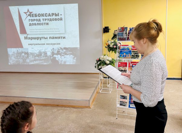 В рамках цикла уроков о памяти и мужестве «Чебоксары – город трудовой славы» сотрудники информационно-сервисного отдела Центральной городской библиотеки имени В. Маяковского организовали для учащихся школы №29 виртуальную экскурсию под названием «Маршрут памяти».