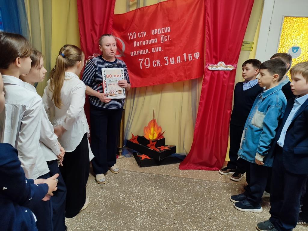 Мероприятие началось с беседы «Всем даруется Победа» у фотозоны «80 лет Победы. 1941-1945», где можно увидеть основную символику, посвященную Великой Отечественной войне, Победе, принятую в нашей стране. Ребята узнали значение и историю символики Победы, прозвучали слова о нашем долге уважительного отношения к ним. Это проявление благодарности и долга перед павшими, памяти о дедах и прадедах присутствующих, почтение к ныне живущим героям, ликование освобожденного народа.