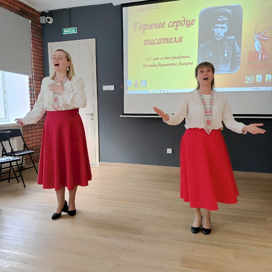 Гостями библиотеки стали учащиеся и преподаватели МБОУ «Кукшумская ООШ» Ядринского муниципального округа Чувашской Республики, откуда родом сам Леонид Агаков. Они подготовили проникновенные выступления, в которых рассказали о жизни и творческом пути писателя, его героизме на фронте и вкладе в чувашскую литературу. Преподаватели школы душевно исполнили патриотические песни.