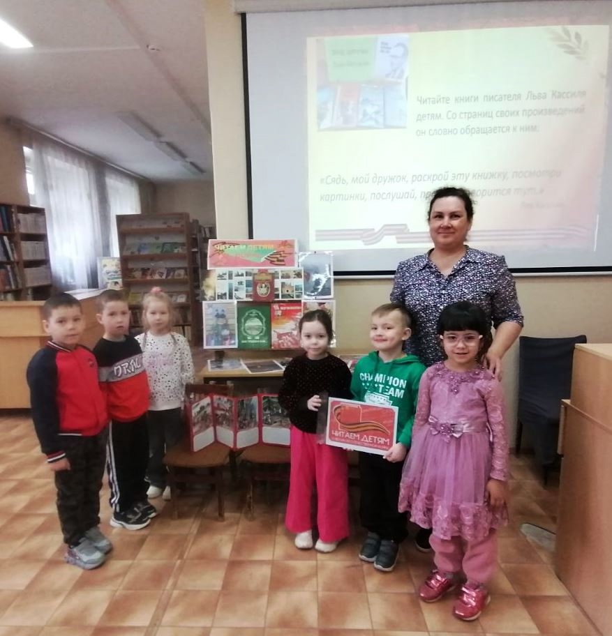 Библиотека им. Л. Кассиля присоединилась к XVI Международной патриотической Акции по поддержке детского чтения «Читаем детям о Великой Отечественной войне». В рамках акции был проведен литературный час «С чего начинается подвиг» для ребят из детских садов № 128 и №133.ю