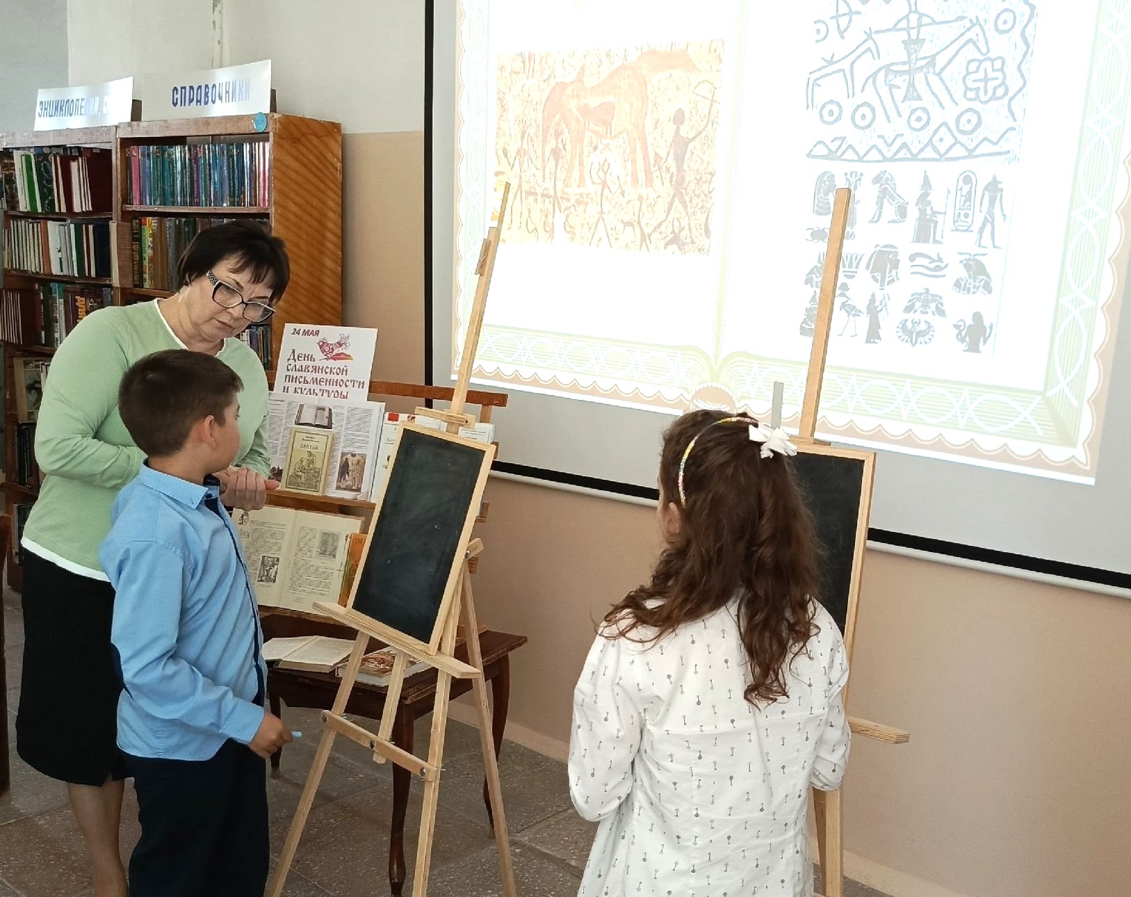 В библиотеке им. В. Чапаева прошел день информации, посвященный Дню славянской письменности и культуры. В этом мероприятии приняли участие обучающиеся 2В класса СОШ №7.