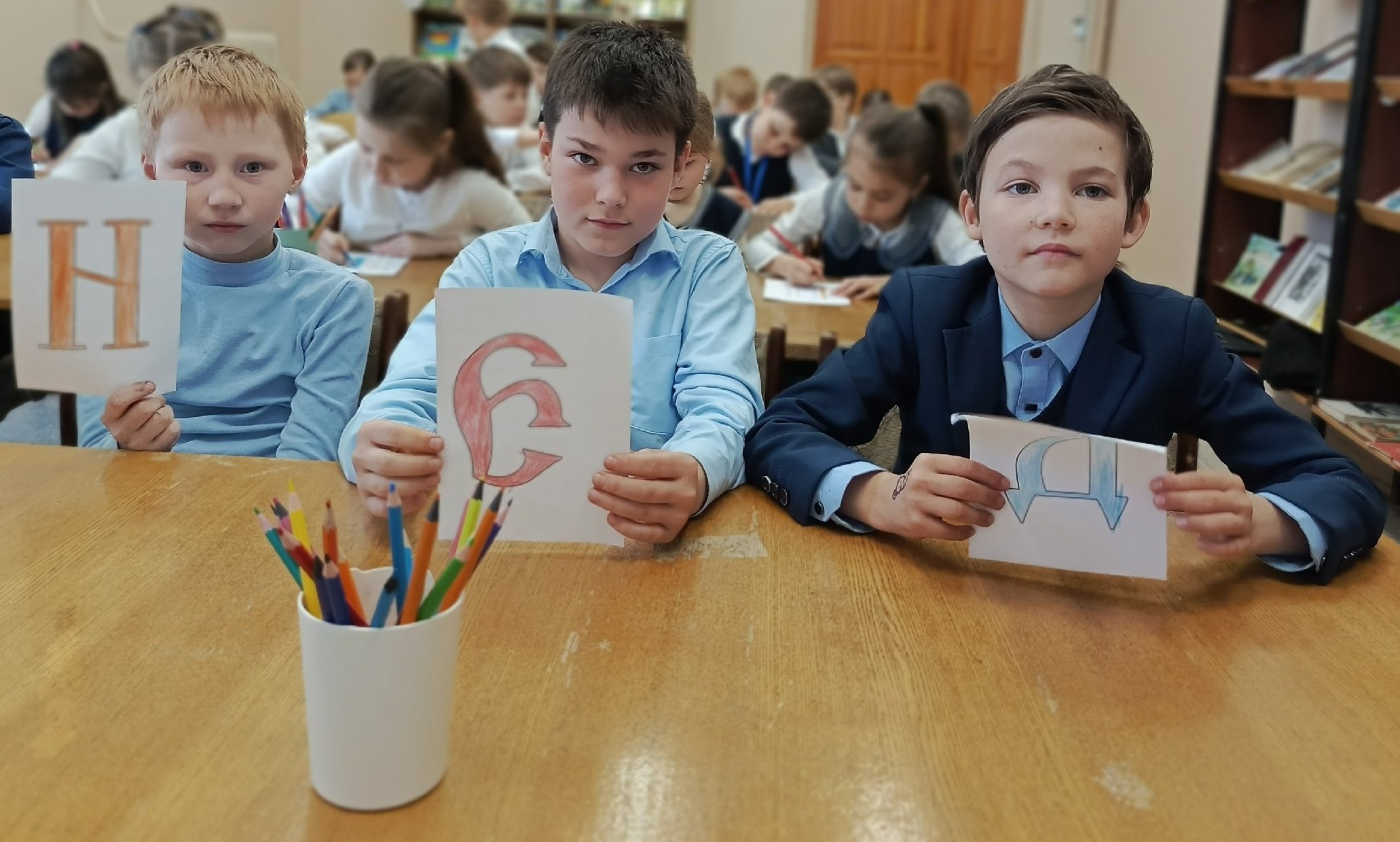 Библиотекари рассказали детям об истории славянской узорчатой вязи, об особенностях узорчатого письма и его значении в культуре. Участники узнали, где можно было встретить вязь и какую роль она играла в оформлении книг, икон и других предметов искусства.