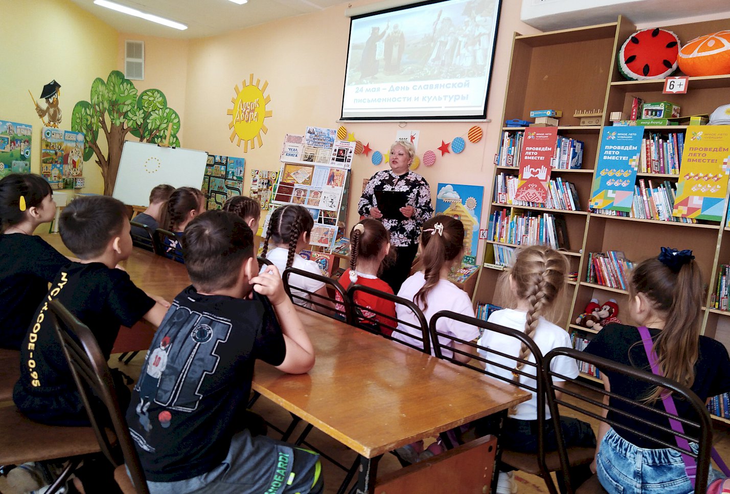 В Библиотеке - центре семейного чтения им. М. Шумилова прошел библиотечный хронограф «У азбуки славянская душа», приуроченный ко Дню славянской письменности и культуры. Участниками мероприятия стали воспитанники подготовительной группы «Подсолнухи» детского сада №166.