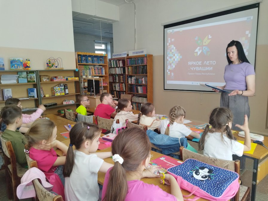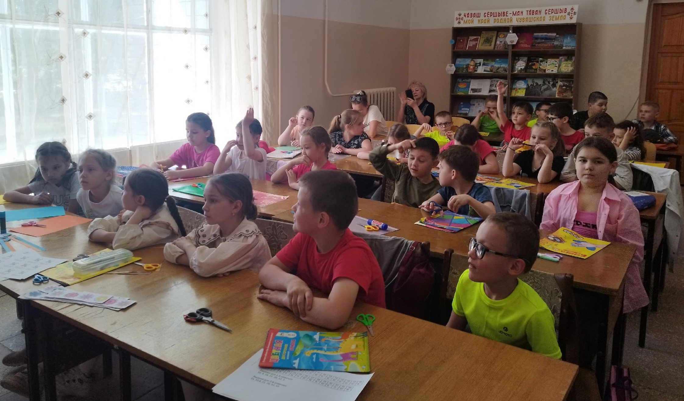 В библиотеке им. В. Чапаева в рамках проекта главы республики Олега Николаева «Яркое лето Чувашии» прошел увлекательный мастер-класс «Закладка-косичка». В мероприятии приняли участие ребята из 1А класса СОШ №7 им. О. Беспалова.