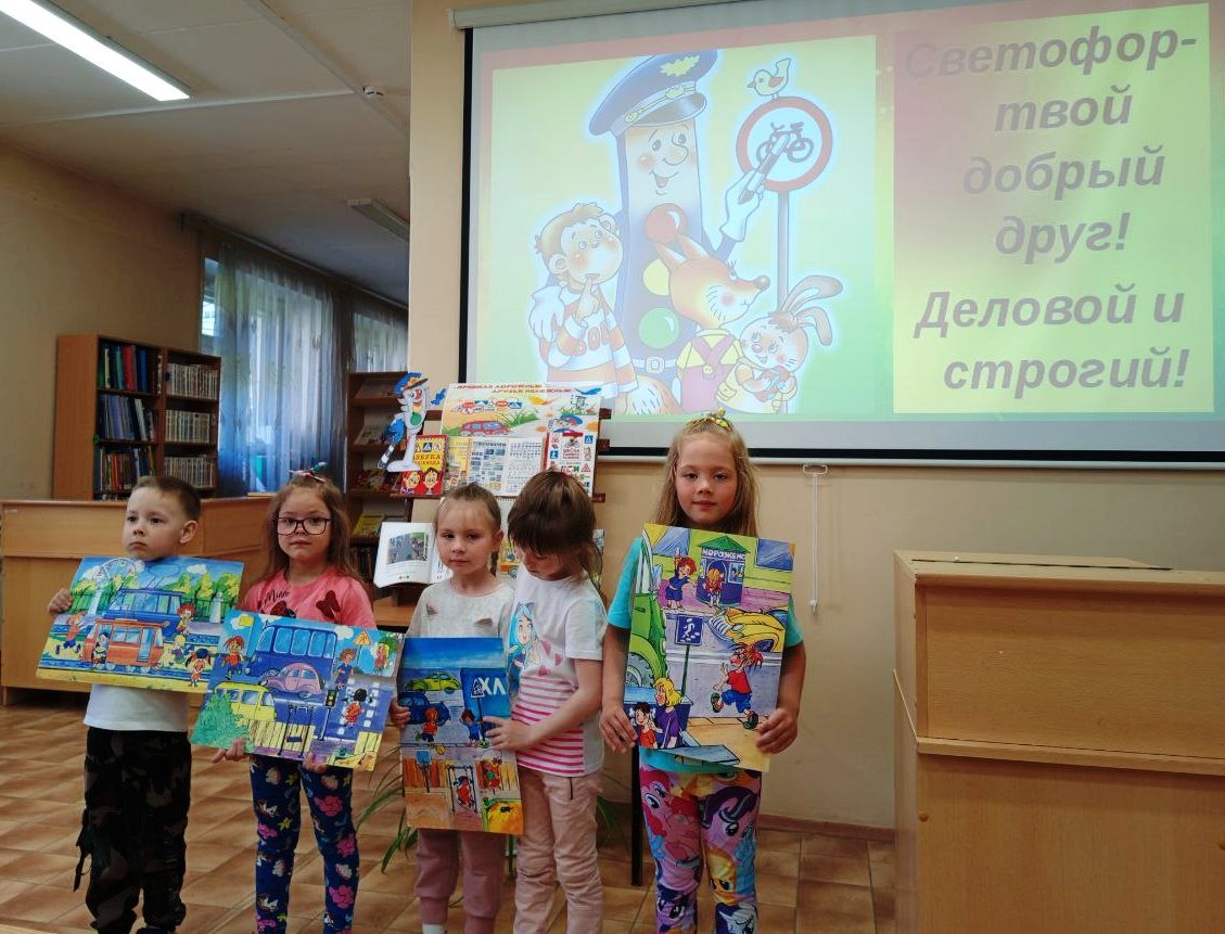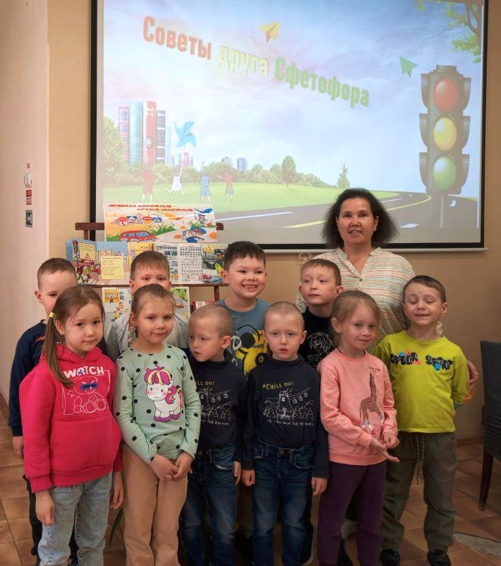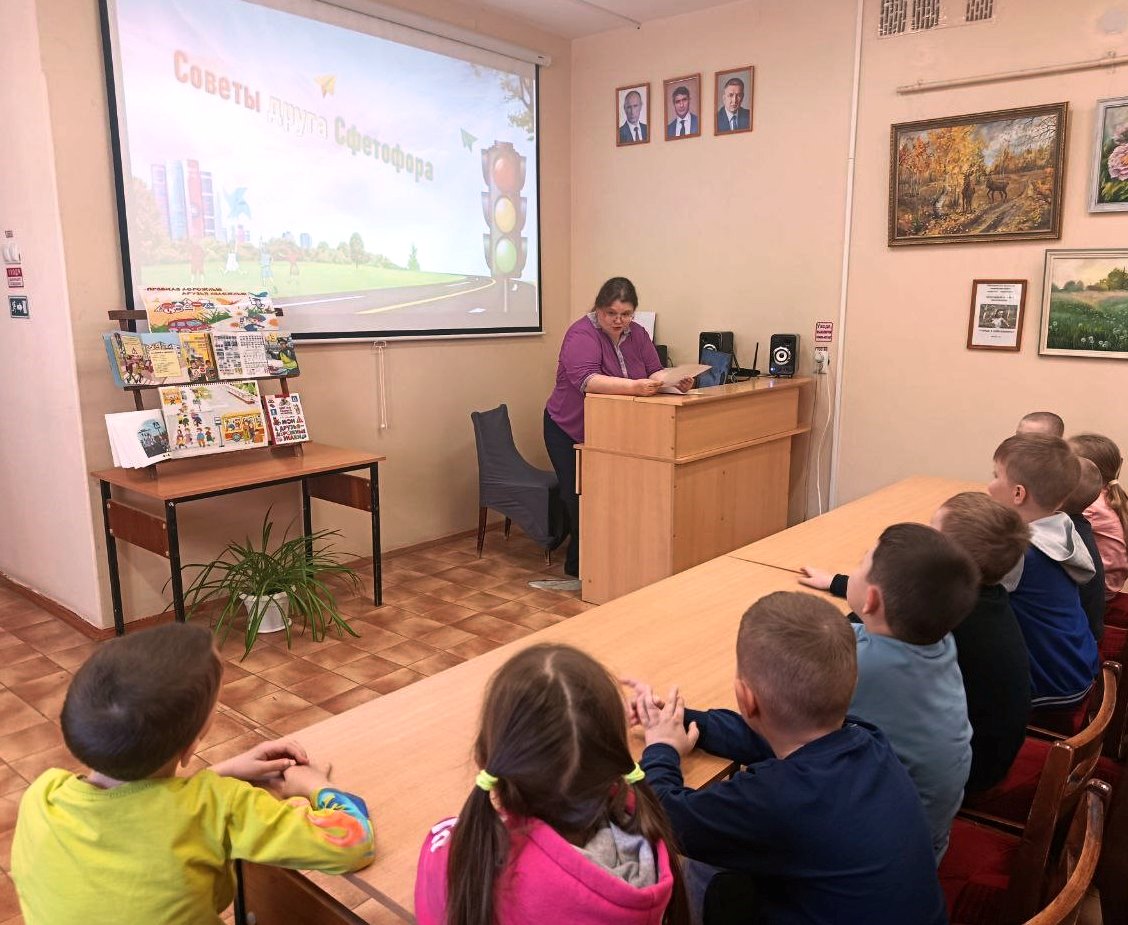 В целях профилактики детского дорожного травматизма в библиотеке им Л. Кассиля для ребят из детского сада №128 был проведен урок безопасности Школы «Спасайка и Умейка» - «Советы друга Светофора».