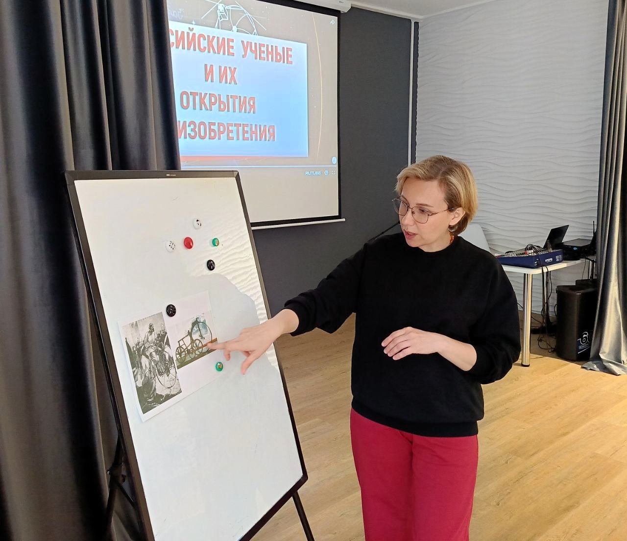 В начале встречи дети узнали о том, кто такие учёные, что такое наука и зачем она нужна. Затем они узнали о русских изобретениях, без которых нельзя представить современный мир: велосипед, электрическая лампочка, телевизор и других.