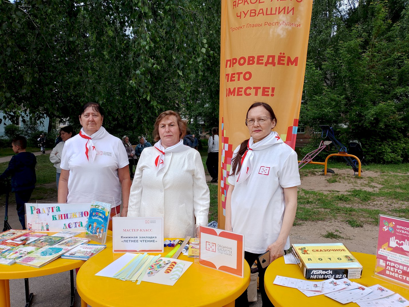 Сотрудники Центральной городской библиотеки им. В. Маяковского в рамках проекта главы Чувашской Республики «Яркое лето Чувашии» приняли участие в праздничной концертной программе во дворе дома N5 по улице Тимофея Кривова.