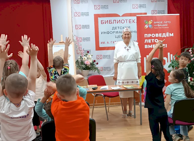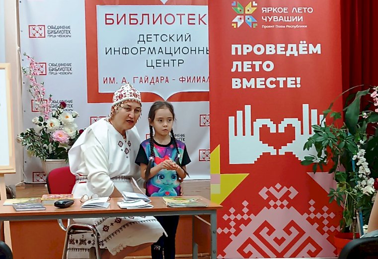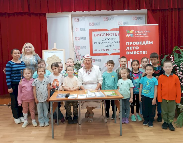 В канун празднования Дня республики и 105-летия Чувашской автономии Альбина Юрату в Библиотеке им. А. Гайдара вновь встретилась с юными читателями - на этот раз с воспитанниками МБДОУ «Детский сад 145» г. Чебоксары и душевно, декламируя свои стихи, поговорила с детьми о любви к Родине, о почитании родителей и старших, о красоте чувашского языка и чувашской вышивки, природы родного края. Стихи Альбины Юрату в авторском исполнении (сначала на чувашском, а затем на русском языке в переводе родной сестры поэта Раисы Сарпи) даже без музыки звучали как песня. Дети слушали любимого автора затаив дыхание, задавали вопросы и охотно отвечали на вопросы гостьи, делились тем, как они проводят свое яркое лето в Чувашии у бабушки и дедушки, пели песни, читали наизусть любимые стихи. Время за теплым и душевным общением пролетело незаметно.