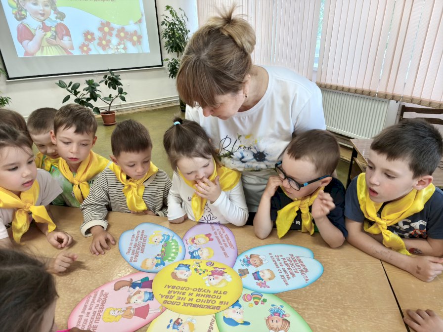 Ребята поиграли в «Потерялось словечко» и «Словарь вежливых слов», вспомнили пословицы и поговорки о вежливости, выразительно прочитали и обсудили персонажей из стихотворения Владимира Маяковского «Что такое хорошо и что такое плохо».