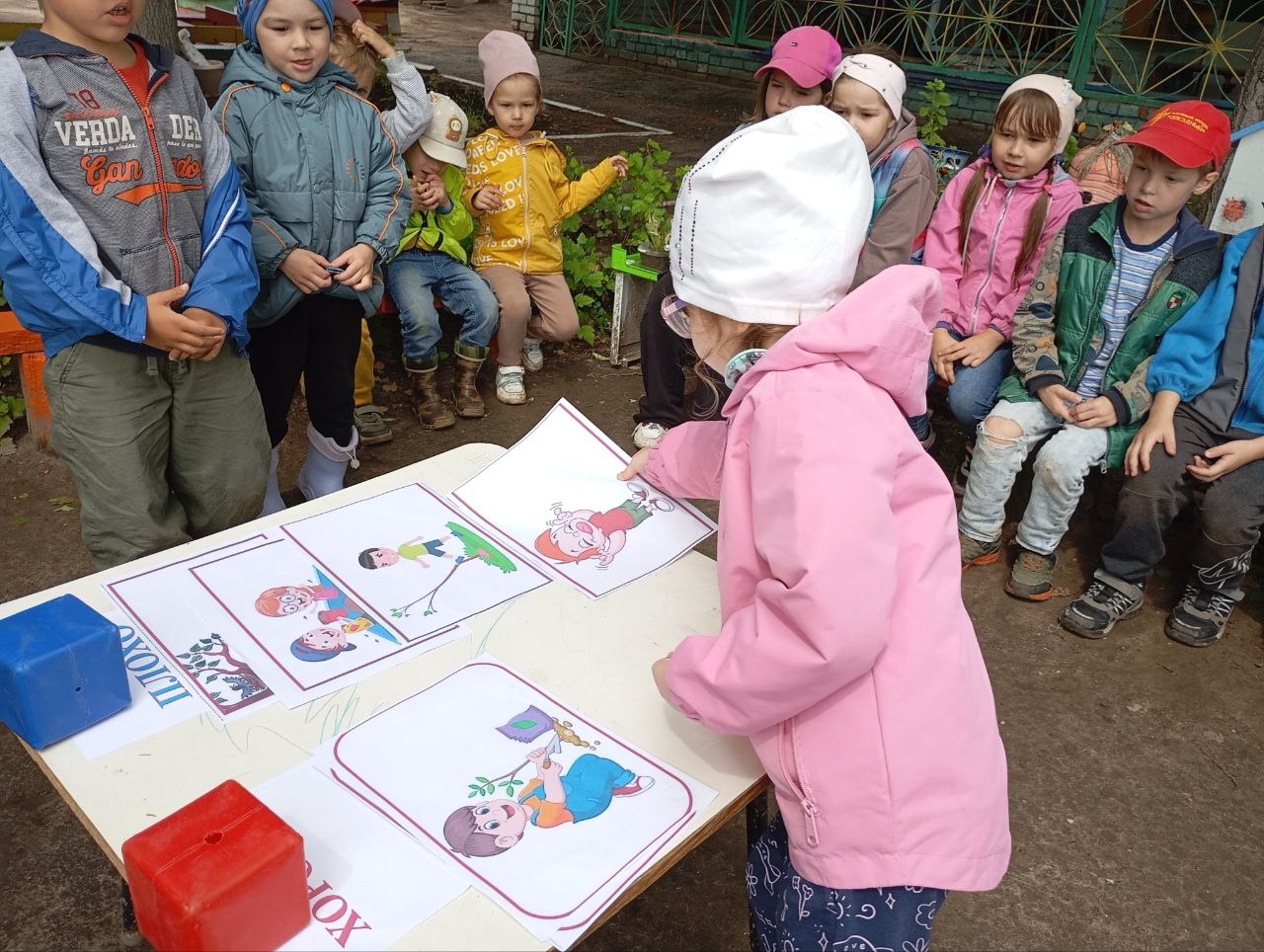 Чтобы сделать мероприятие динамичным и увлекательным, была проведена физкультминутка «Делай как я!». В игре дети показывали движения, имитирующие как хорошие поступки, так и плохие.