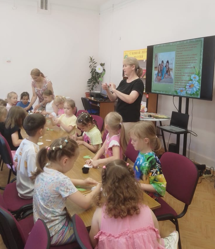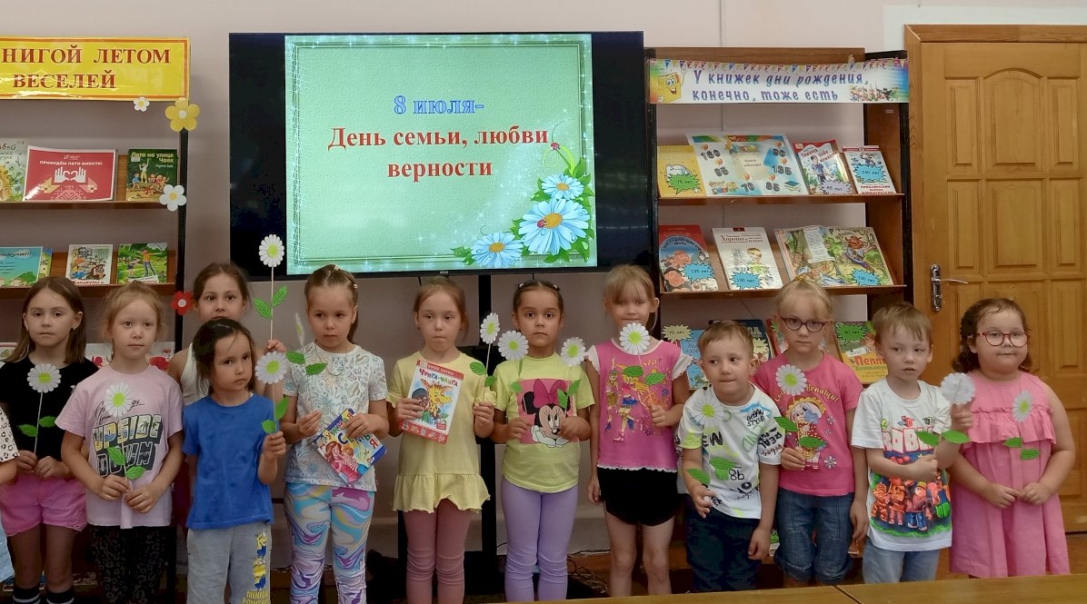 В рамках этого праздника в библиотеке им. А. Пушкина прошел мастер-класс «Ромашки нежный лепесток» для воспитанников МБДОУ №23. Участники мероприятия познакомились с историей и традициями праздника, с символом Дня семьи, любви и верности – ромашкой; узнали, что этот нежный цветок стал символом совсем неслучайно: ромашка – символ лета, тепла, уюта, олицетворяет чистоту, нежность и искренность чувств, ассоциируется с материнством и семейным теплом, с древности используется для любовных гаданий («любит — не любит»). Ребята отгадывали загадки, вспоминали пословицы о семье, о дружбе, о семейных ценностях.