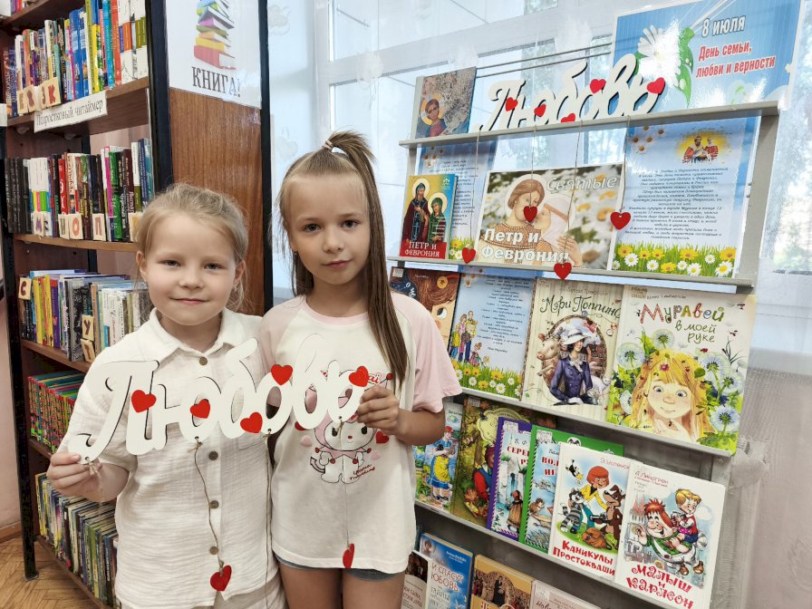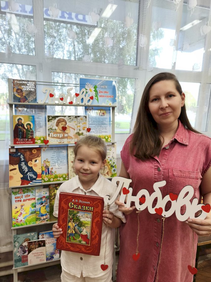 В библиотеке им. К. Иванова прошла выставка-обзор «Любовью дорожить умейте», посвященная Дню семьи, любви и верности. Читатели познакомились с историей возникновения праздника, легендой о Петре и Февронии, ромашке, которая с древних времен была знаком любви. Рассуждали, без чего не бывает семьи и тепла отчего дома, придумывали прилагательные к слову «семья», рассказали о своих семейных традициях. С читателями поговорили про художественные произведения, где добрые отношения, любовь и забота в семье помогли литературным героям преодолеть преграды, справиться с трудностями.