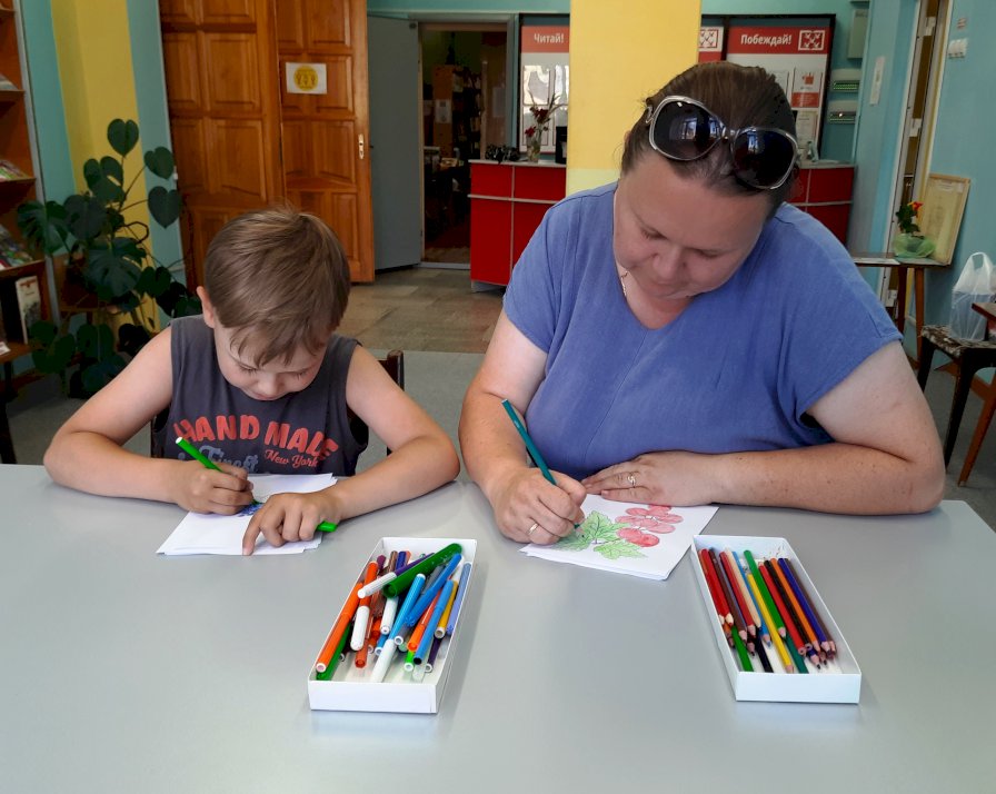 А для самых юных гостей библиотеки были приготовлены раскраски с изображением смородины. Ребята с удовольствием раскрашивали свои любимые ягоды, проявляя фантазию и творчество.