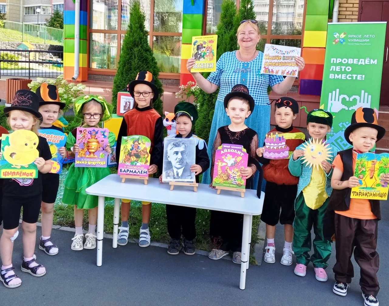 17 июля, в честь 100-летия книг-юбиляров Корнея Чуковского «Доктора Айболита» и «Бармалея», ведущий библиотекарь Светлана Васильева с ребятами из детского сада № 202 «Город чудес» отправились в путешествие в мир сказок любимого многими детьми писателя по литературному калейдоскопу «Веселая страна Чуковия».