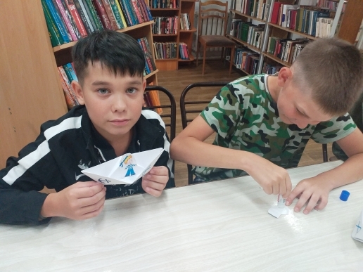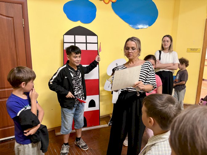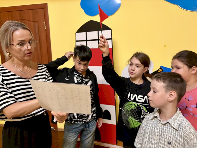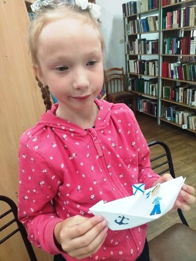 В отделе художественной и детской литературы на станции «Черноморский флот», используя семафорную азбуку, ребята передавали сообщения при помощи жестов рук и флагов, как сигнальщики на корабле. А на станции «Балтийский флот» участники мероприятия вспомнили основные, часто используемые морские термины, отгадывали морские загадки и мастерили из бумаги кораблик.
