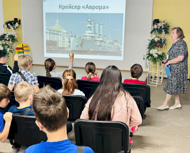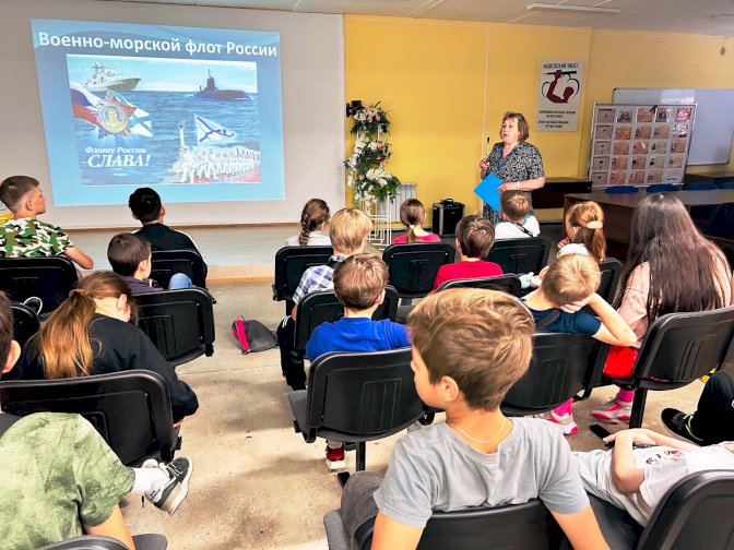 В начале мероприятия ребята из сообщения сотрудника отдела художественной и детской литературы и представленной электронной презентации узнали об истории праздника, об Андреевском флаге, о роли Петра I в создании военного морского флота, о легендарном крейсере «Аврора» — символе Октябрьской революции.