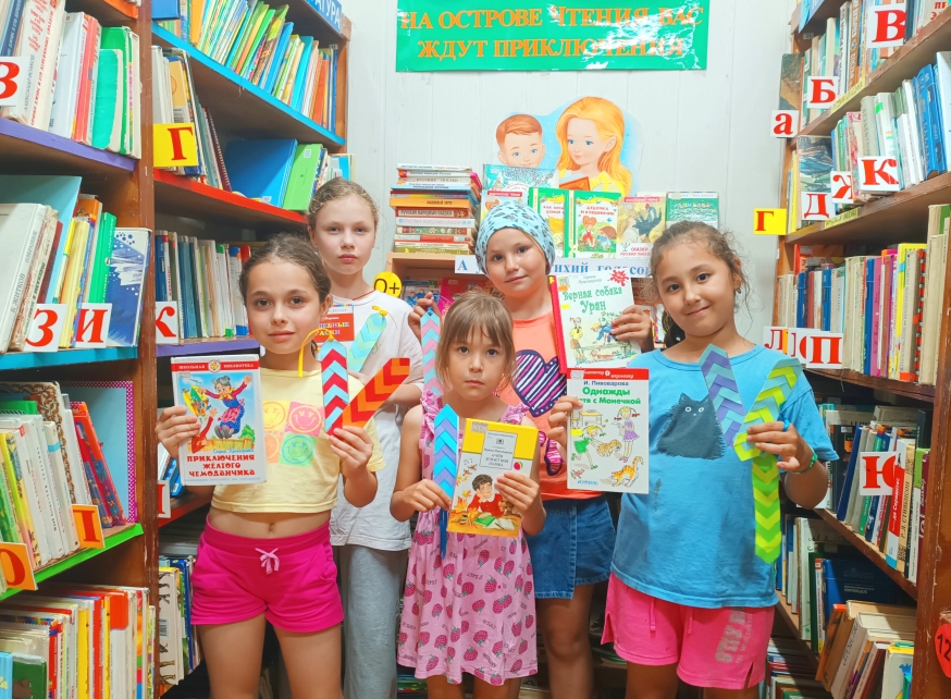В библиотеке встреча одних ребят сменилась со встречей другой группы ребят. Встречи в библиотеке продолжаются. Хочется надеяться, что июль стал насыщенным, а звонкие детские голоса будут звучать у книжных полок до конца лета. Как известно, у книг нет каникул, потому что чтение помогает не только учиться, но и отдыхать.