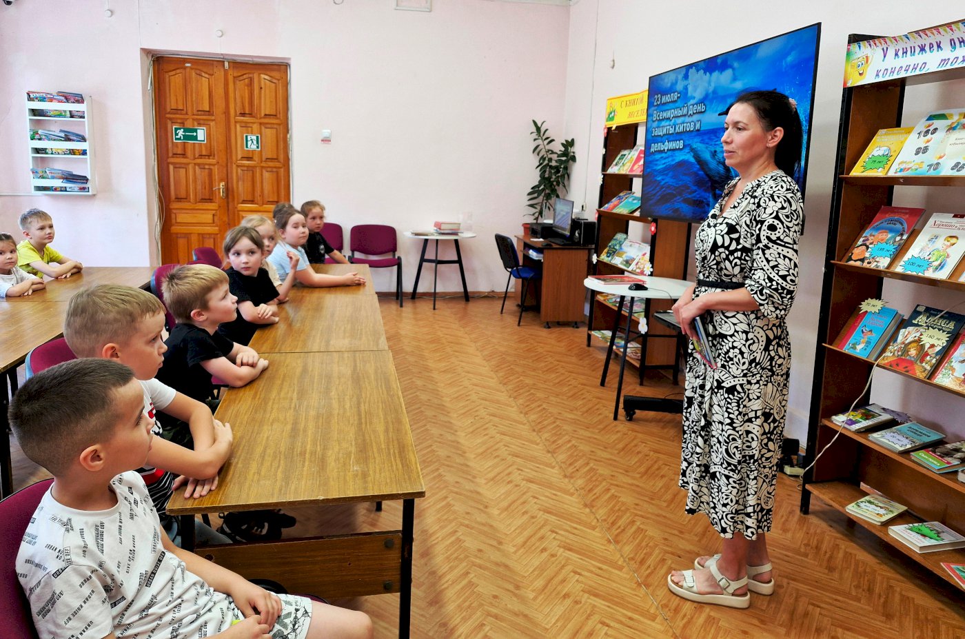 На мероприятии дети узнали много интересного о жизни китов и дельфинов, их среде обитания и значении для экосистемы океанов. Библиотекари подготовили увлекательный рассказ, презентацию, видеоматериалы, которые позволили маленьким участникам погрузиться в подводный мир.