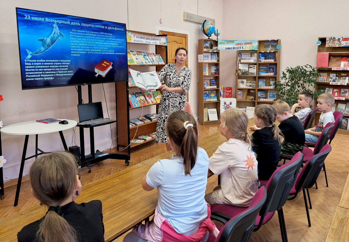 В библиотеке им. А. Пушкина состоялся библиодайвинг «Путешествие с морскими великанами», приуроченный к Всемирному дню китов и дельфинов.