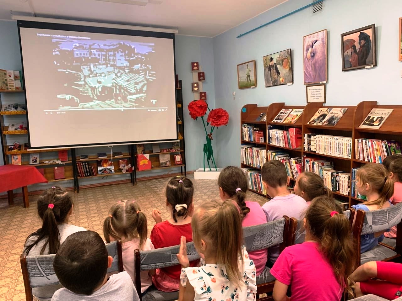 На очередной встрече с читателями подробнее остановились на Ленинградской битве, об основных его этапах, о блокаде города. Для просмотра детям был предложен мультфильм «Воробышек». В нём рассказывается история двух маленьких существ, которые, помогая друг другу, выживают во время блокады. Ребята с большим интересом просмотрели его, а после увиденного обсудили.