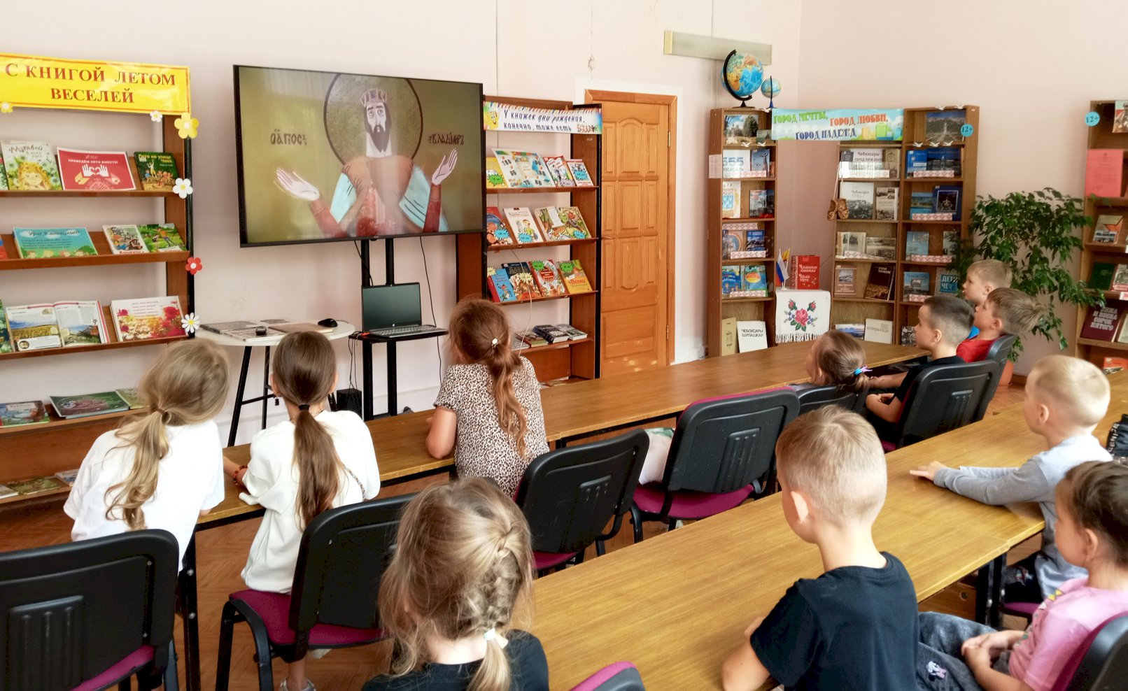 В завершение юные читатели путешествовали по лабиринту «Помоги князю Владимиру» и посмотрели познавательный мультфильм о Крещении Руси.