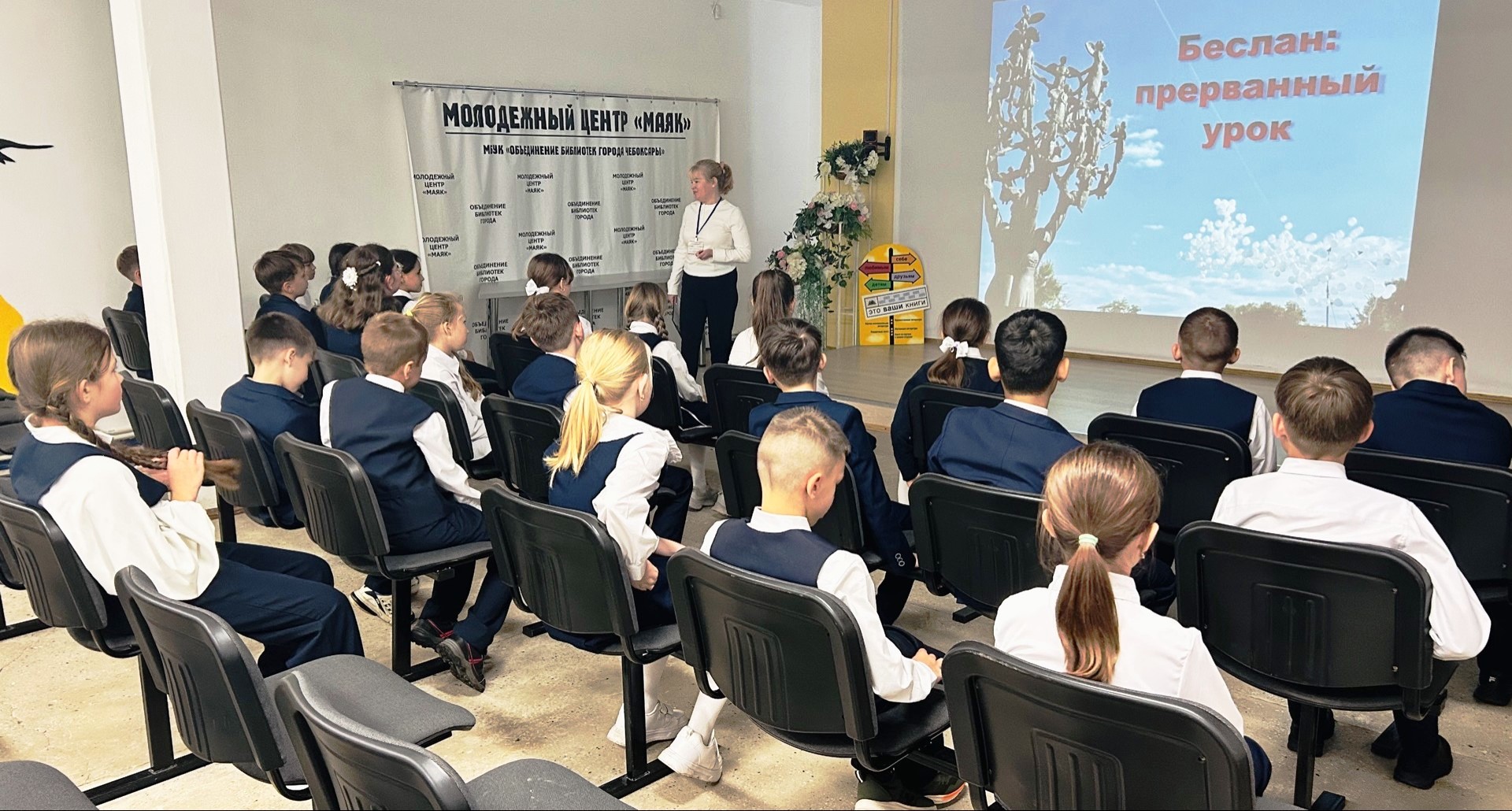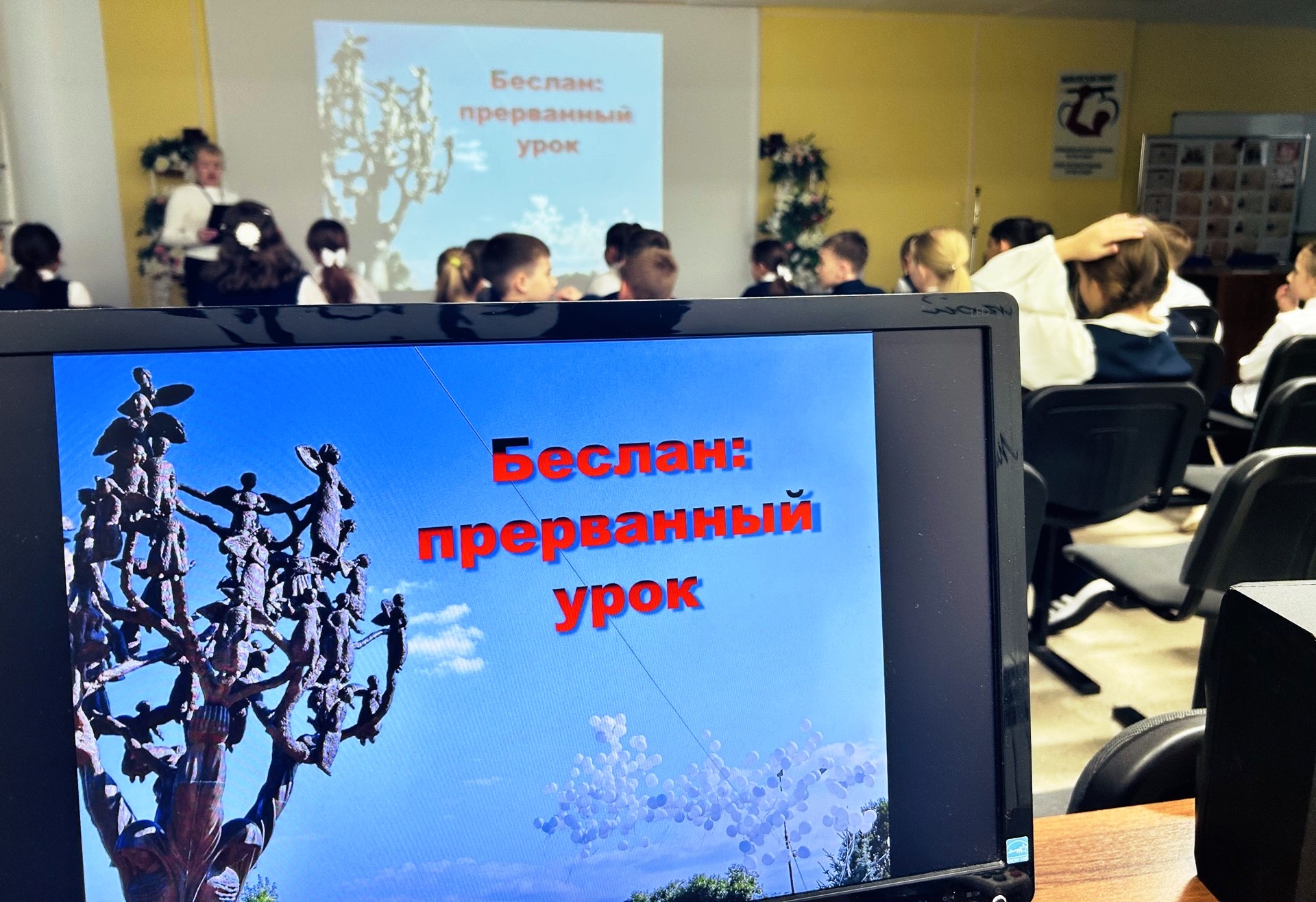 Сотрудники информационно-сервисного отдела Центральной городской библиотеки им. В. Маяковского провели для учащихся школы № 39 видеолекторий «Беслан. Прерванный урок».