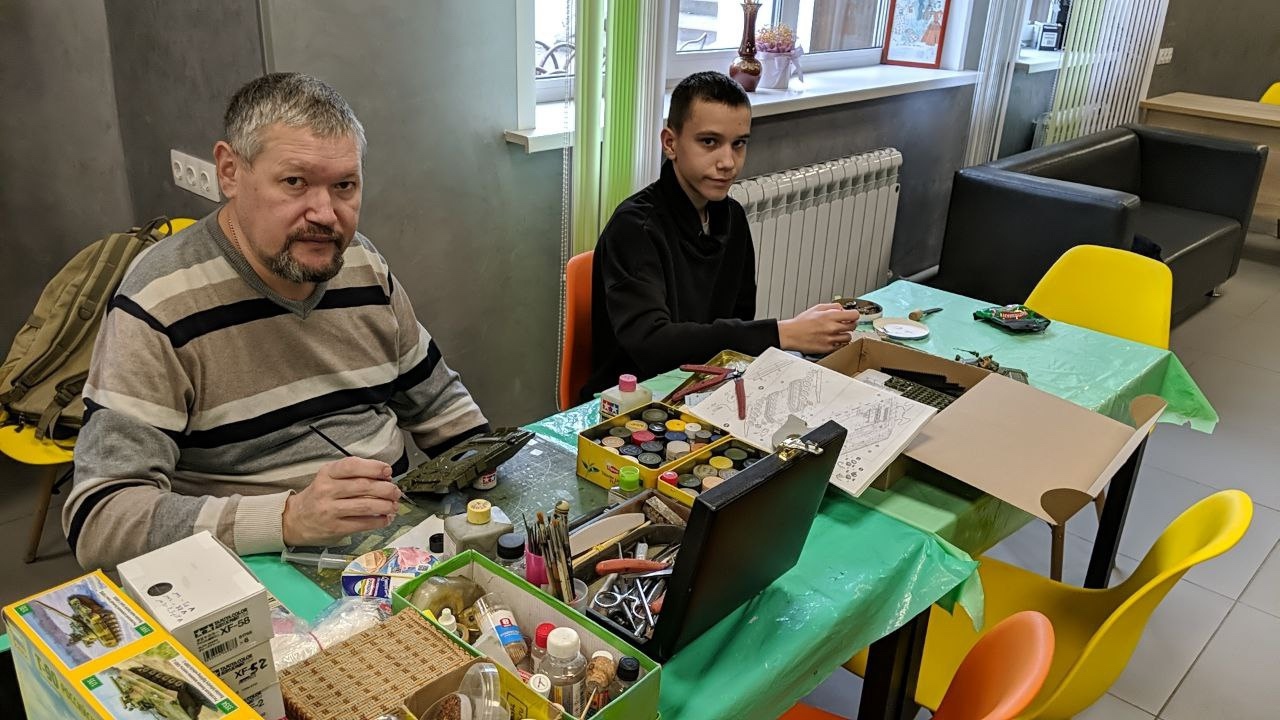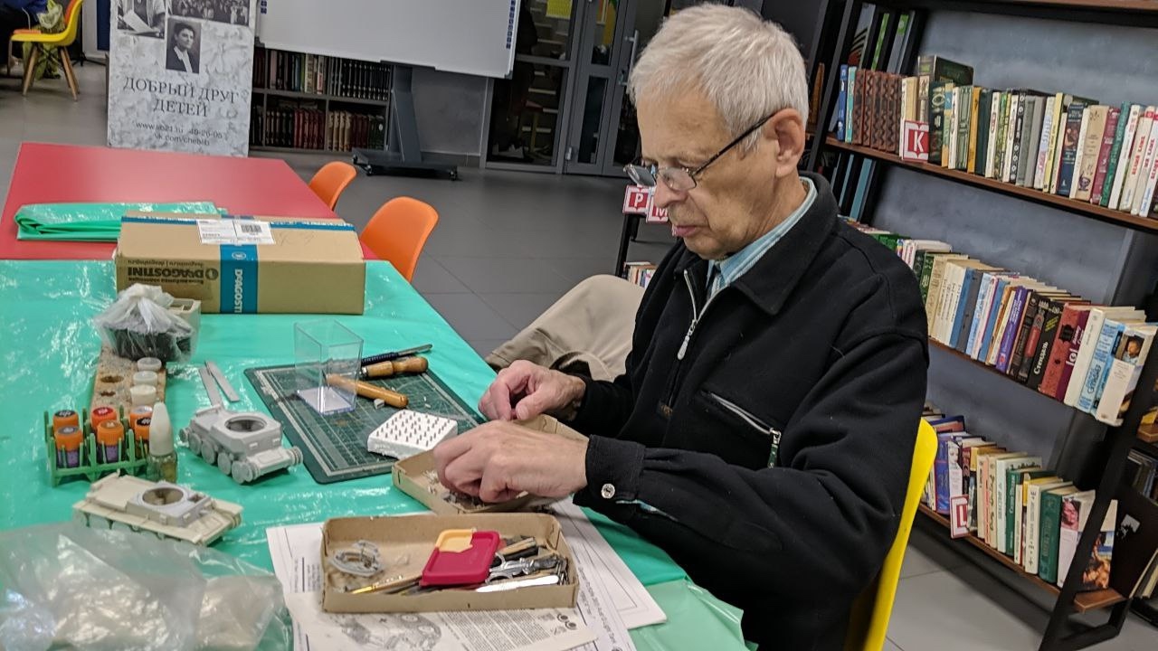 В течение дня в библиотеке работала интерактивная выставка «Парад военной техники» мастерской «Арсенал-Хобби». Под руководством Игоря Витальевича ребятам был показан мастер-класс по сборке танков и самолетов!