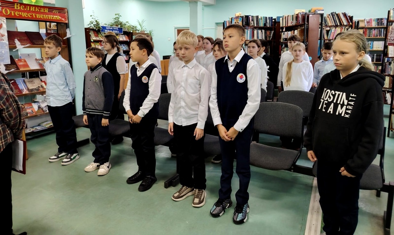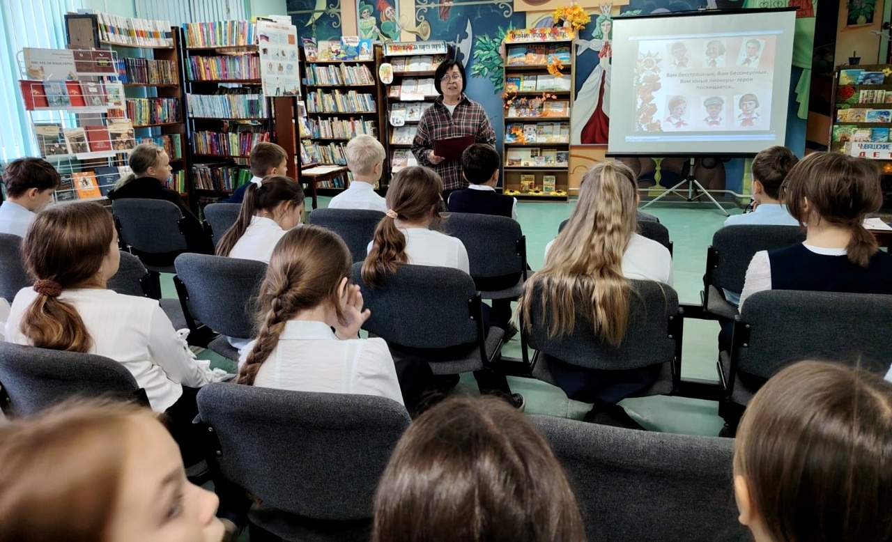 В рамках Года защитника Отечества и 80-летия Великой Победы в Молодежной библиотеке им. К. Чуковского прошел урок мужества «Слава, достойная памяти». Учащиеся 5 «А» класса средней школы № 2 вместе с библиотекарями почтили память тех, кто стал для нас символом мужества, отваги и любви к Родине, тех, кто погиб на фронтах Великой Отечественной войны.