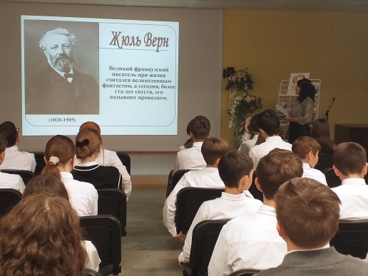 В начале мероприятия ребята ознакомились с творчеством французского писателя и узнали, что Жюль Верн создал целую библиотеку увлекательных приключенческих романов, наполненных познавательными сведениями из разных областей знаний.