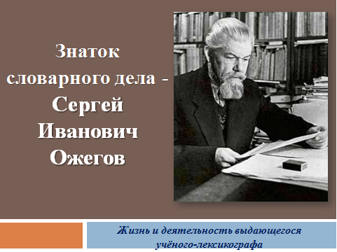 Сотрудники отдела художественной и детской литературы представили электронную презентацию о жизни и деятельности Сергея Ожегова и рассказали о главном его труде — «Словаре русского языка», впервые изданном в 1949 г. и включавшем 57 тысяч слов.