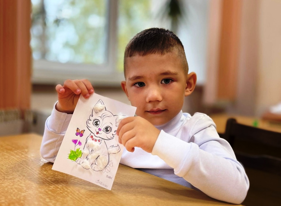 Все дети любят маленьких котят. На творческом мастер-классе «Чудо-кошечка» ребята из бумаги и ватных дисков изготовили чудесную красавицу. Носик и глазки раскрасили цветными карандашами, а пушистую шерсть сделали из ваты. У всех получились милые котята.