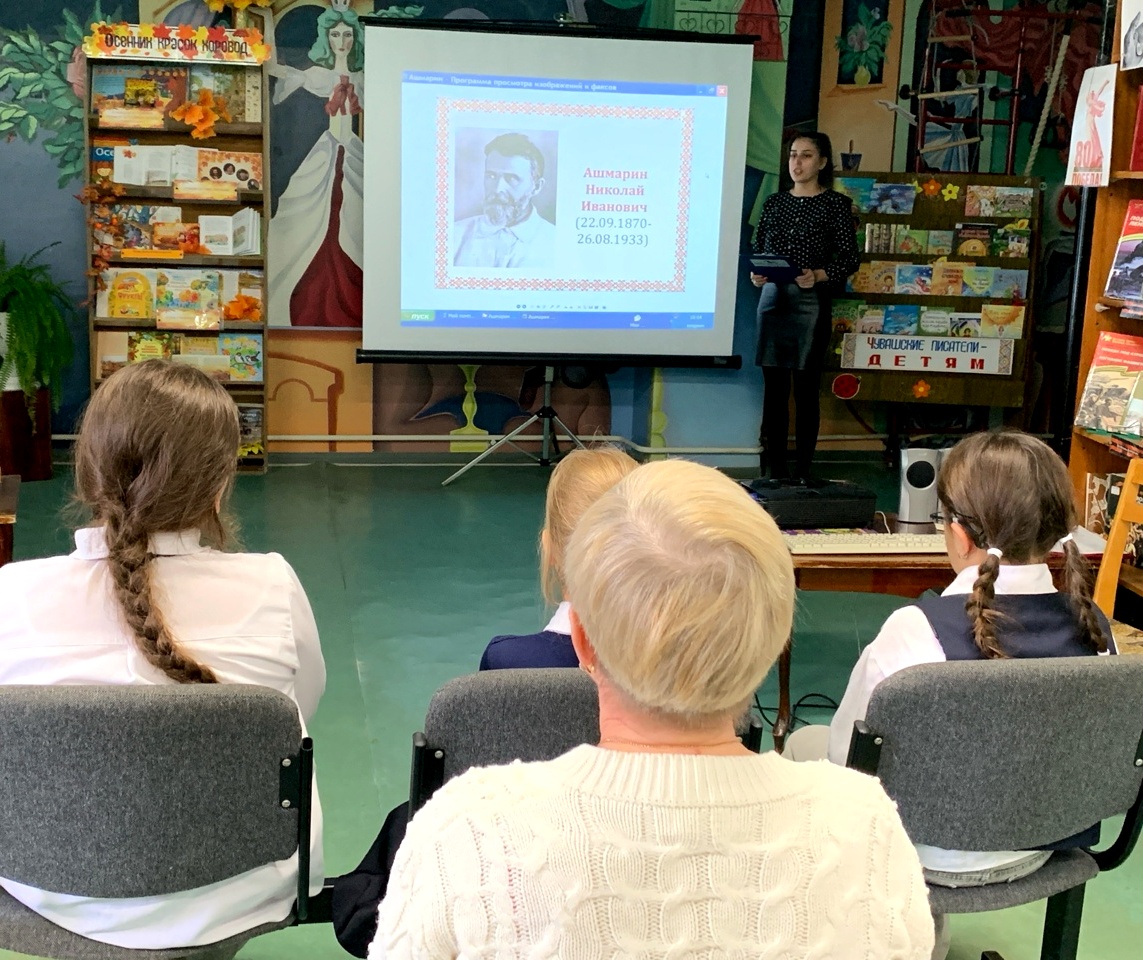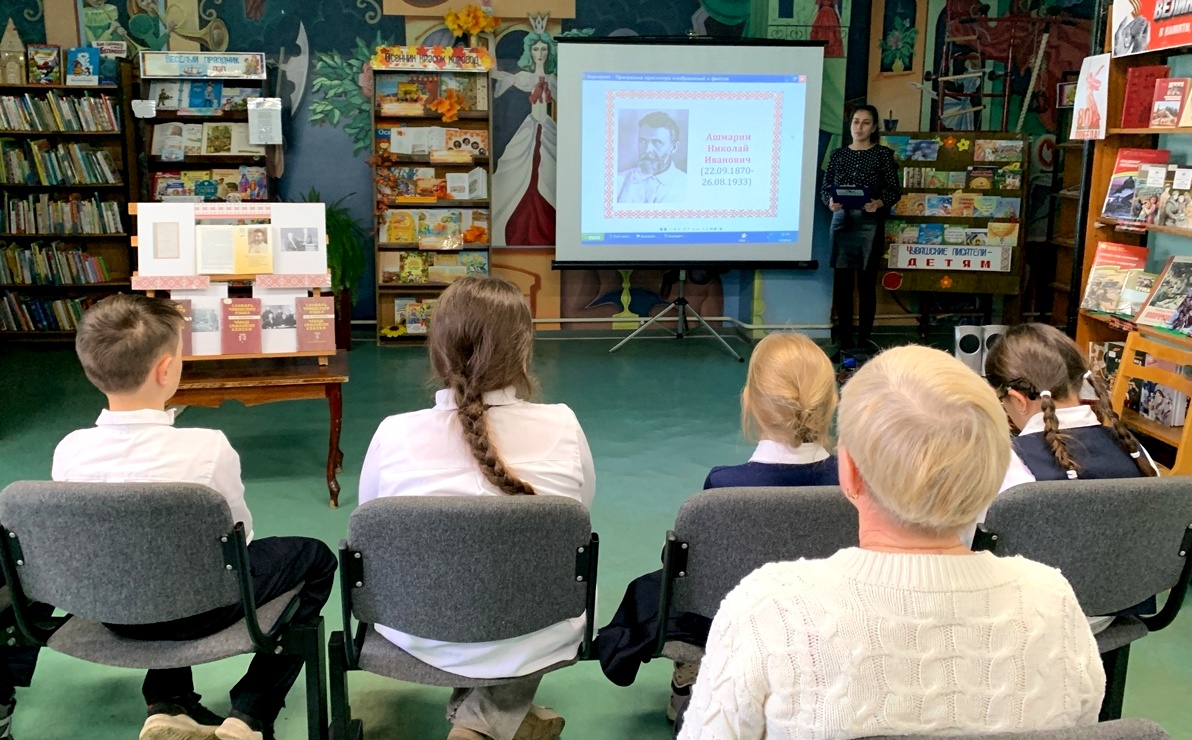 В Молодежной библиотеке им. К. И. Чуковского с учащимися средней школы №2 прошел краеведческий урок-знакомство «Жизнь во имя чувашского языка». Библиотекарь познакомила ребят с биографией Николая Ивановича, рассказала о его жизненном пути. Юные читатели узнали, что он создал 17-томный «Словарь чувашского языка», над которым трудился более 30 лет. Являлся автором десятков исследований по языкознанию и владел 65 языками.
