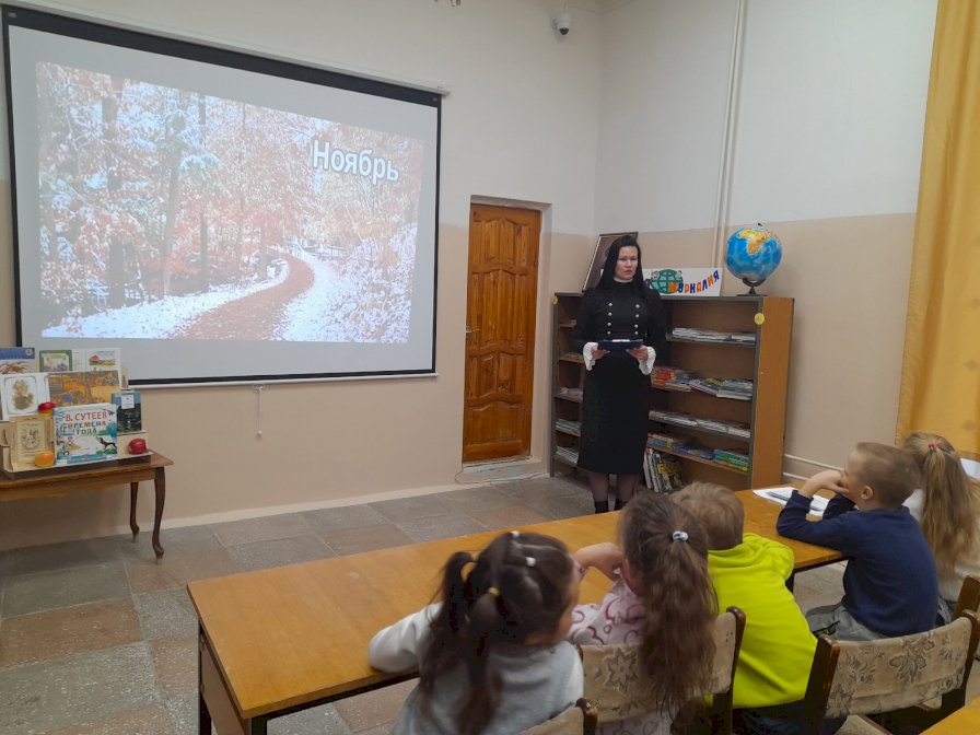 Библиотекарь рассказала о том, как меняется природа в это время года. Дети вспомнили, какие месяцы входят в осенний период, активно отгадывали загадки. Особое внимание уделили тому, как животные, птицы и насекомые готовятся к зиме.