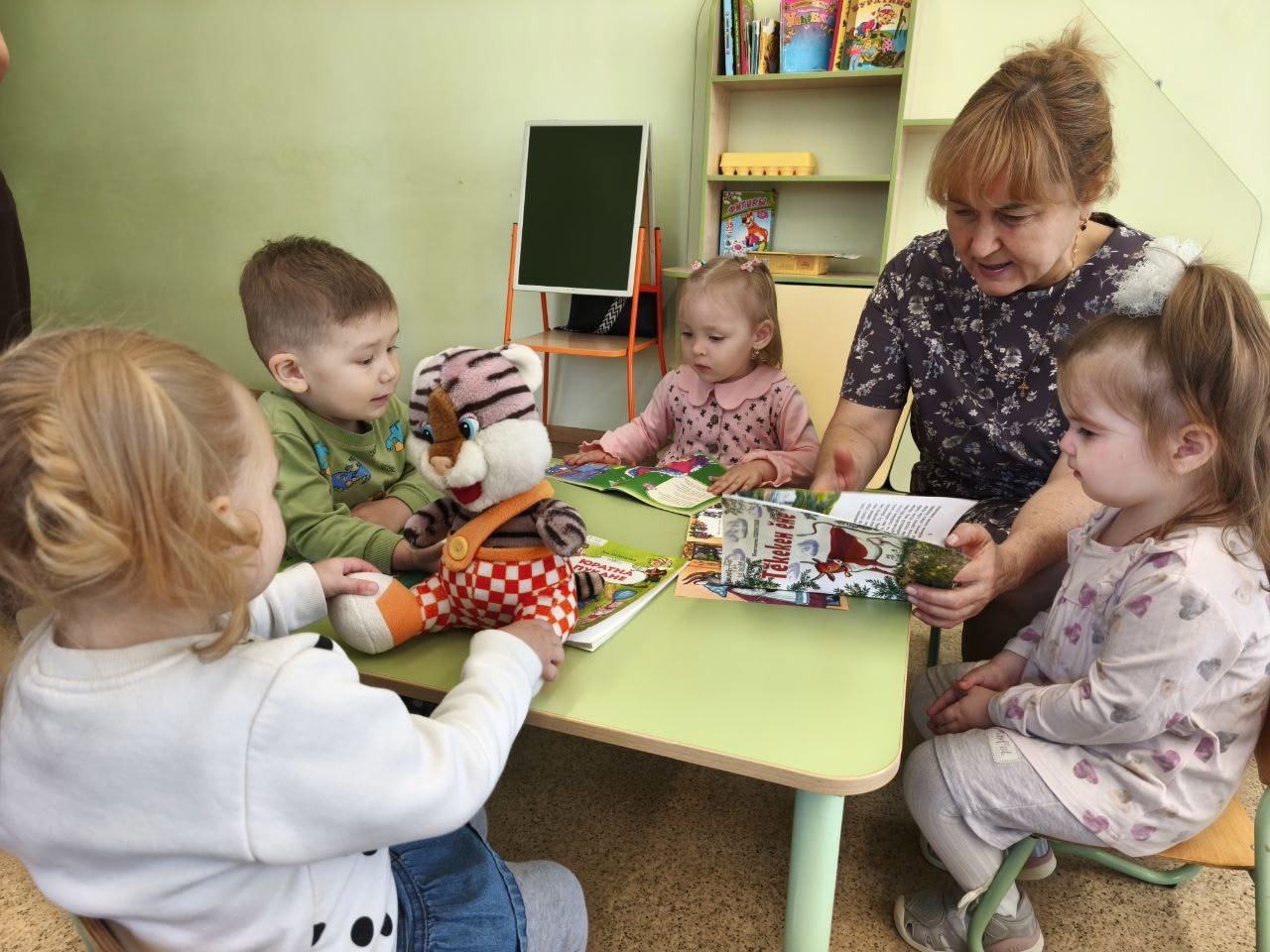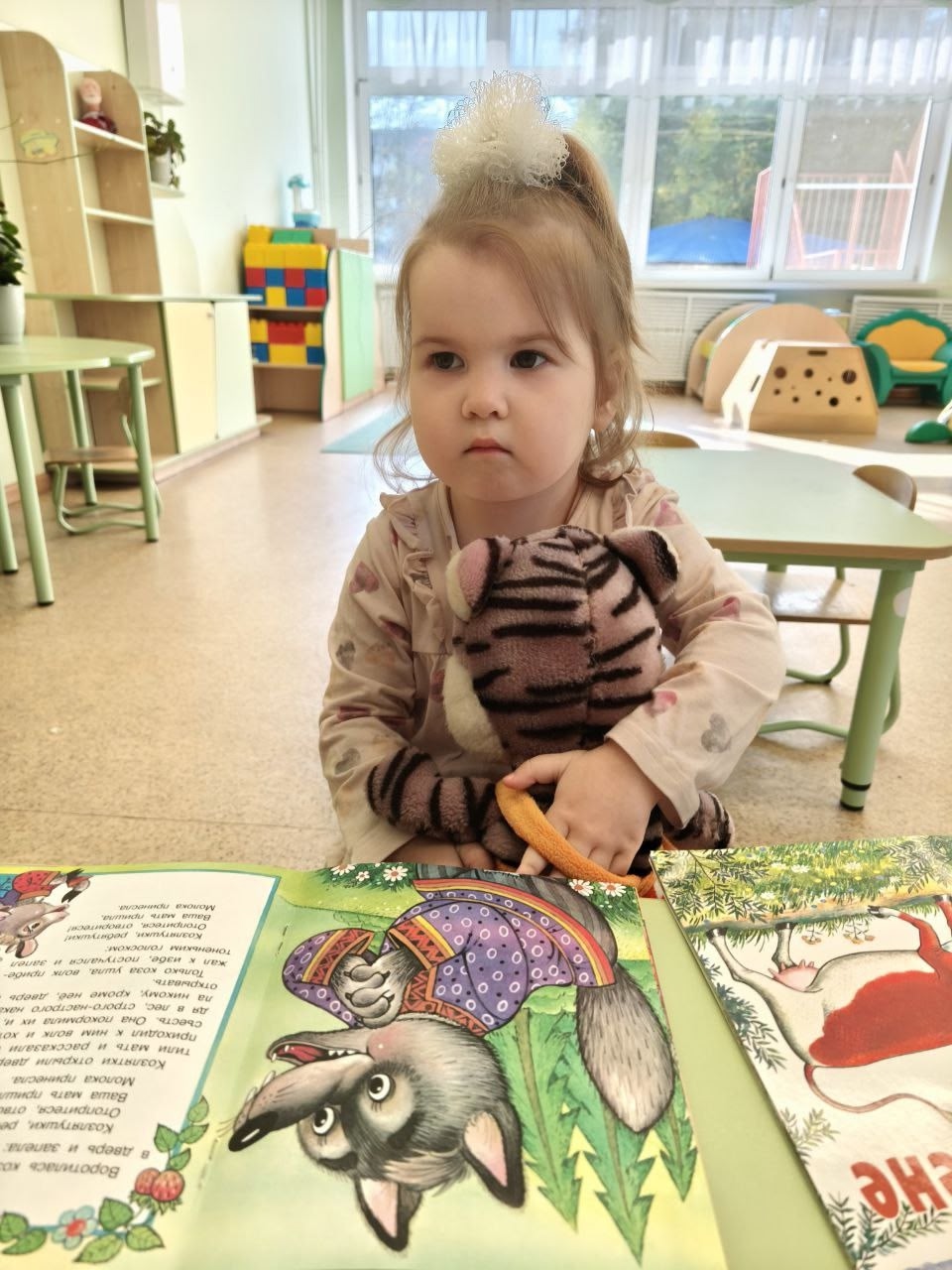 В игровой форме малыши встретились с героями, которые живут на страницах сказок, отгадывали загадки о животных, рассказывали о своих домашних питомцах. Вместе с библиотекарем прочитали сказку «Колобок». Девочки и мальчики не только внимательно слушали сказку, но и активно отвечали на шуточные вопросы, переживали за Колобка, узнали о повадках зайца, волка, медведя и лисы. Отрадно было узнать, что малышам папы и мамы тоже читают сказки. А библиотечный тигренок предложил детям полистать книжки, которые принесли на мероприятие.