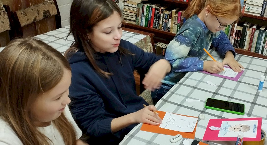 А потом рисовали портрет своего папы, читали книги русских писателей.