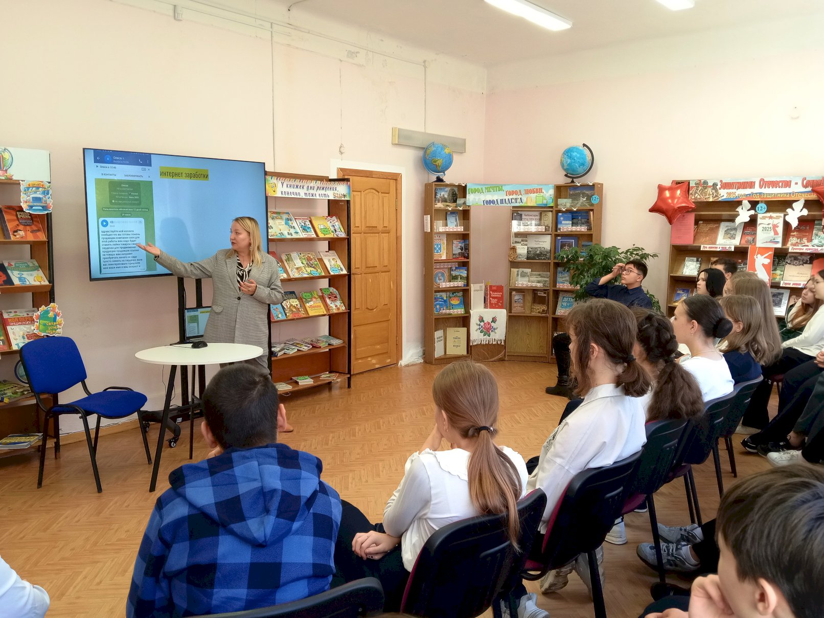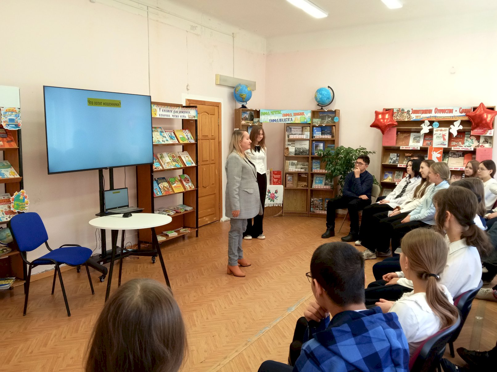Для повышения уровня финансовой грамотности, формирования финансового поведения, для финансовой безопасности подростков, чтобы они научились обезопасить свои финансы и финансы своих родителей, развивать в себе ответственное отношение к денежным средствам и избегать мошенников, председатель финпотребсоюза в ЧР по защите финансовых интересов населения Матвеева Татьяна в библиотеке им. А. Пушкина для учащихся старших классов СОШ №10 провела час финансовой грамотности «Защити свои финансы».
