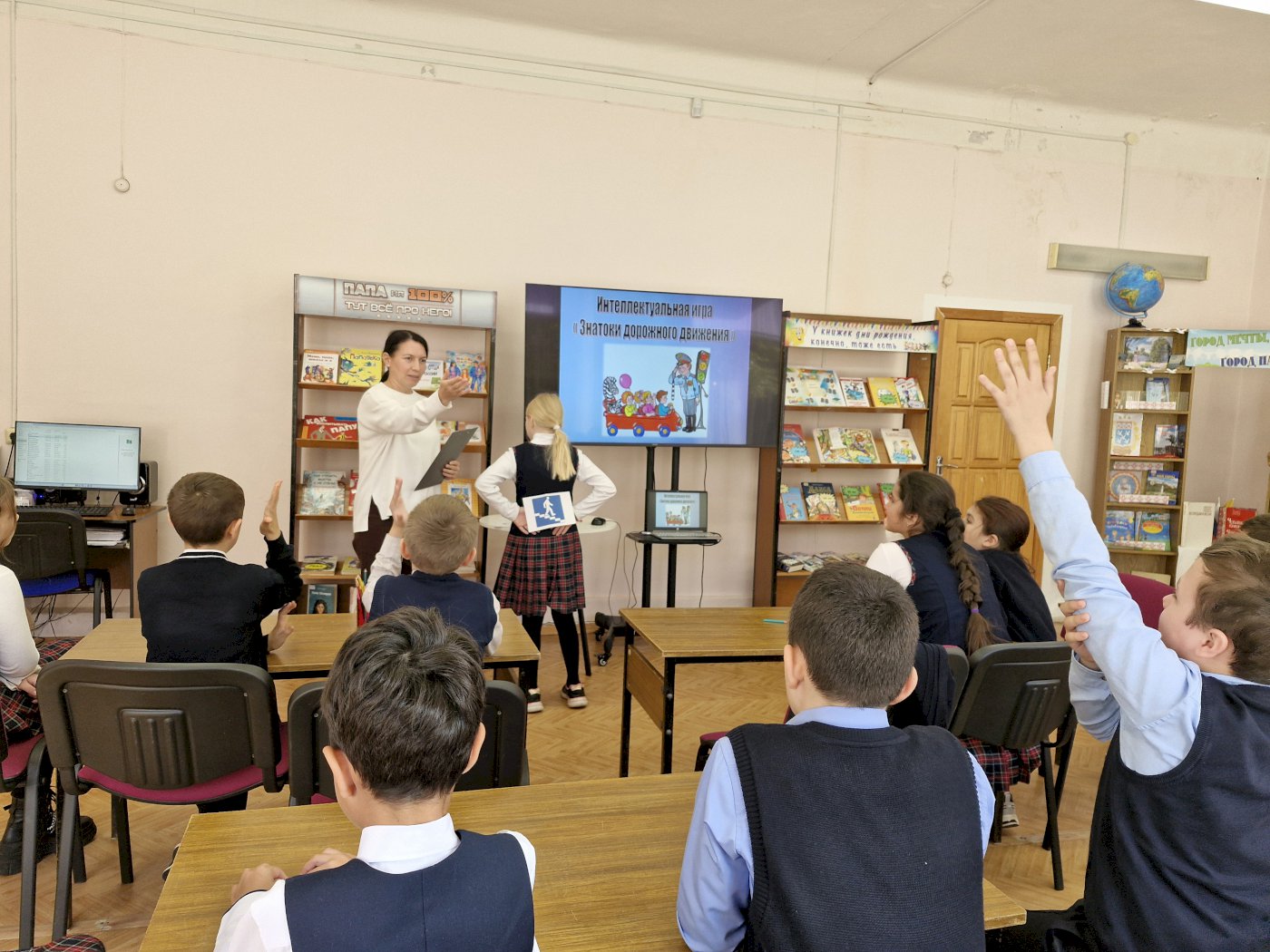 В рамках школы юного пешехода «Светофорик» в библиотеке им. А. Пушкина для учащихся 3 классов школы № 10 прошла увлекательная игра-путешествие «Весёлые светофоры».